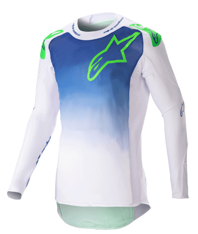 Supertech is Alpinestars innovative Pro Level Motocross apparel line, designed for superior dirt riding performance. With an engineered design for an athletic ‘race’ fit, a chassis consisting entirely of advanced stretch mesh and an ultra-lightweight construction, the Supertech Jersey is Alpinestars lightest ever MX jersey. Featuring a host of SX and MXGP race-proven technologies, the Supertech Jersey delivers optimum levels of flexibility, freedom of movement, ventilation, durability and comfort.