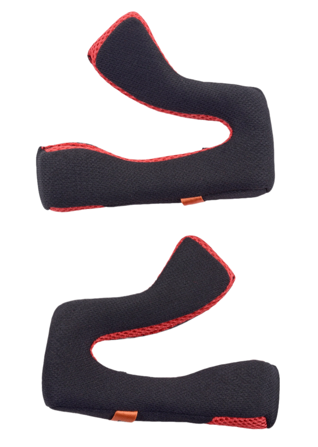 Alpinestars S-M5 Replacement Cheek Pads, set of two interior helmet padding, black with red mesh trim, ergonomic curved shape for motocross helmet, replacement parts for fit and comfort