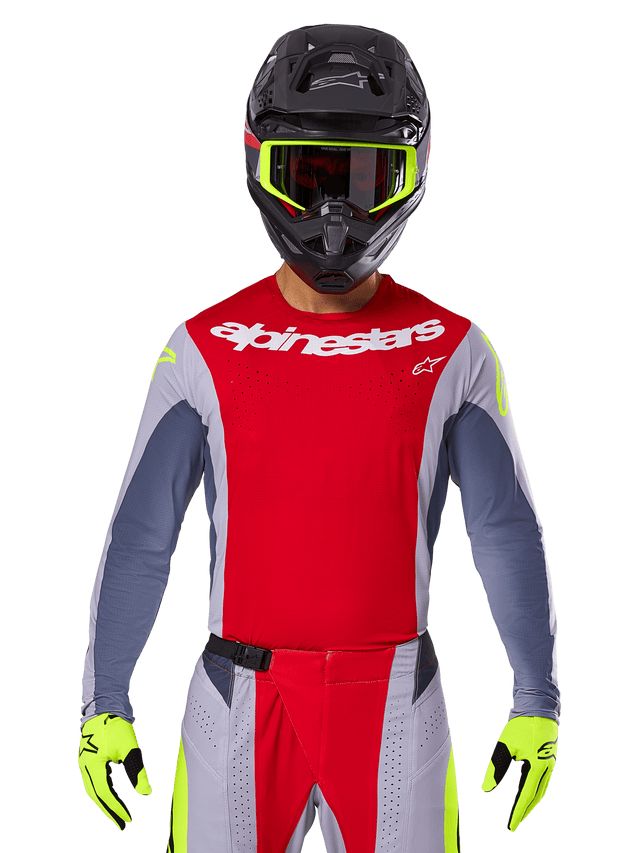 • The lightweight, Techstar Melt Jersey with its athletic race fit features an updated multi-material construction with a precisely body-mapped poly-fabric stretch main chassis that incorporates ergonomic stretch inserts for premium mobility and enhanced rider comfort.