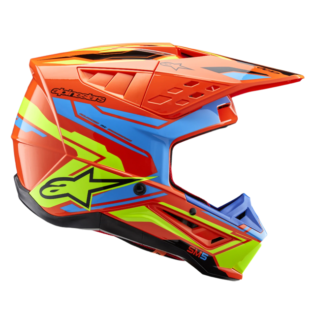 El casco SM5 ha sido diseñado para proporcionar a los pilotos de MX un casco que es seguro y diseñado específicamente para ofrecer una protección y comodidad óptimas. El ligero casco SM5 cuenta con una carcasa termo-inyectada que incorpora una mezcla especial de polímeros realzada por diferentes grados de grosor que está diseñada para ofrecer la combinación óptima de protección contra impactos y ligereza, mientras que el forro EPS de cinco densidades asegura la densidad correcta en el área correcta para una mejor absorción de impactos.