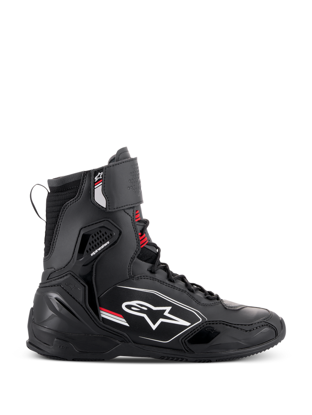 Con la comodidad de un zapato de calle y la protección de una bota de motociclismo, los zapatos Superfaster Tech miden alrededor de 25 cm de alto, lo que ofrece al motorista una mayor cobertura y, lo que es más importante, una protección superior, gracias al protector de impacto integrado en la parte inferior de la espinilla y al nuevo sistema de tobillera interna semirrígida con protección contra impactos en el maléolo y un amplio protector en el tendón de Aquiles.